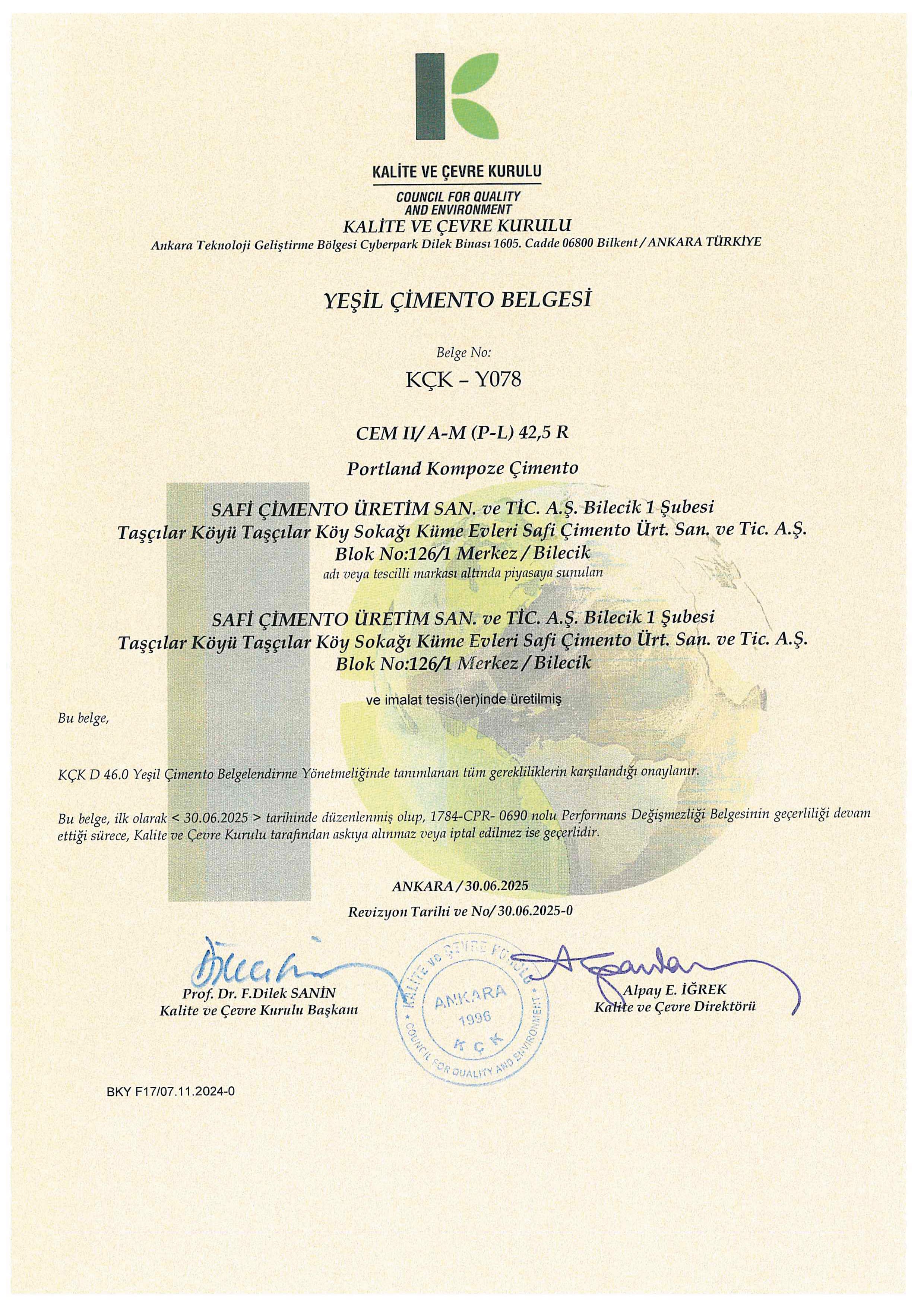 Yeşil Çimento Belgesi - CEM II/A-M (P-L) 42,5 R