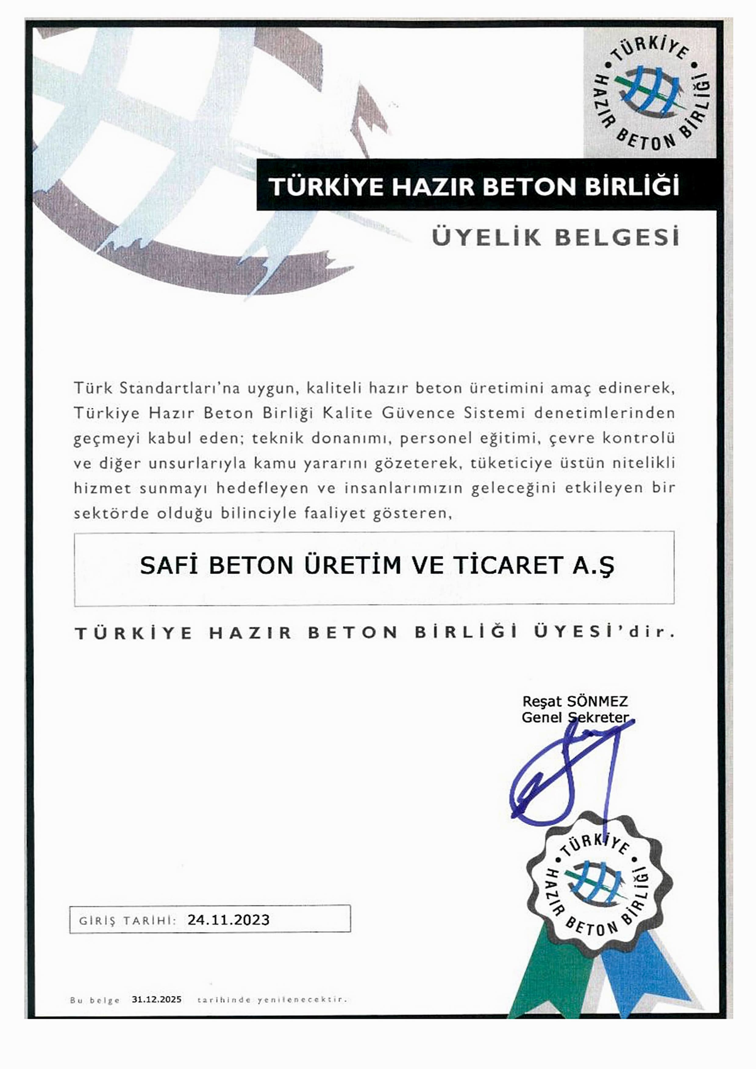 Turkish Ready Mixed Concrete Association Membership Certificate